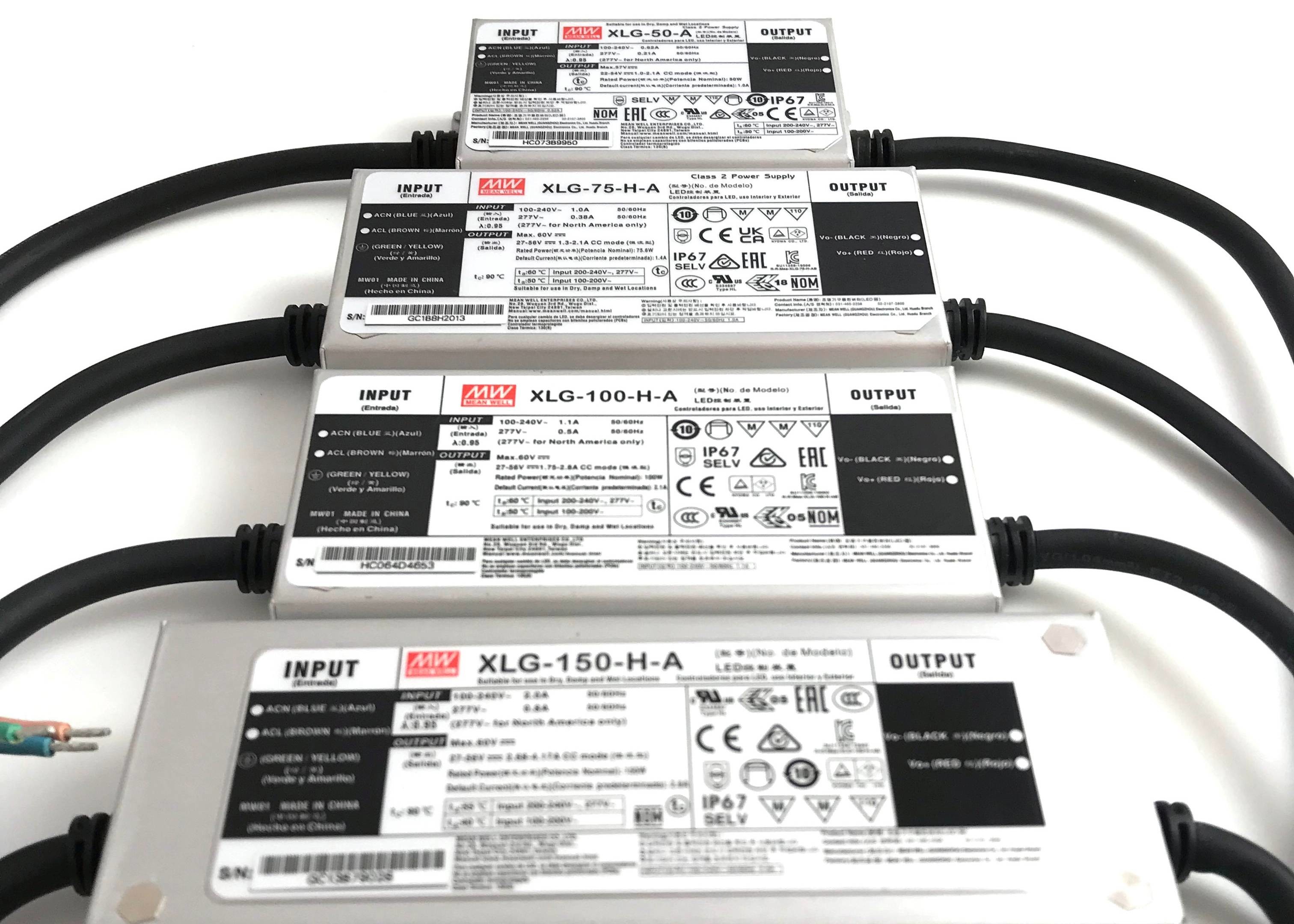 স্টক মিনওয়েল আউটডোর আইপি 67 এক্সএলজি সিরিজ 50W 75W 100W 150W 200W 240W ধ্রুবক শক্তি স্ট্রিট লাইট নেতৃত্বাধীন ড্রাইভার